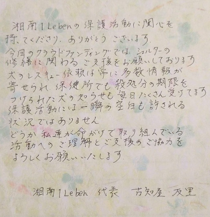 終了まであと7日!湘南1Leben代表古知屋より、皆様へお手紙です