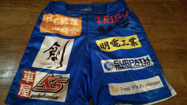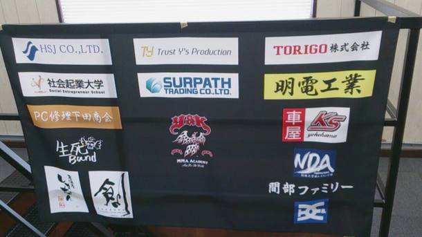 皆様からご支援してもらいました資金は試合の応援用具(Tシャツ、バナー横断幕、ジムのぼり、試合用バトルトランクス)に使用させて頂きました。
