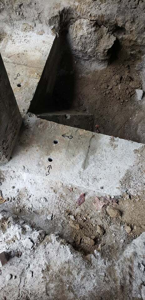 そして昭和34年の工事も、観音様をおまもりするため、かなり丈夫なお堂をつくられていることが、また、判明しました。 下層部の柱部分のコンクリートを増加するため、地面を掘り下げると、とても極端なフーチングがみられました。