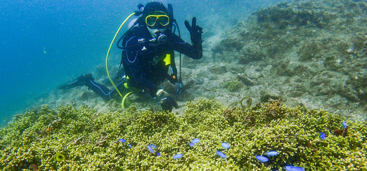 ↑静岡県沼津市の海でダイビングする翔太(中学1年生のころ)