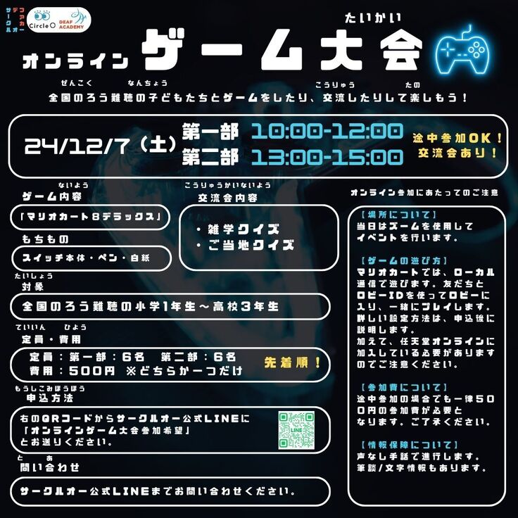 ぜひ周りにゲーム好きのろう難聴のお子さまがいらっしゃいましたら、お声がけください😊