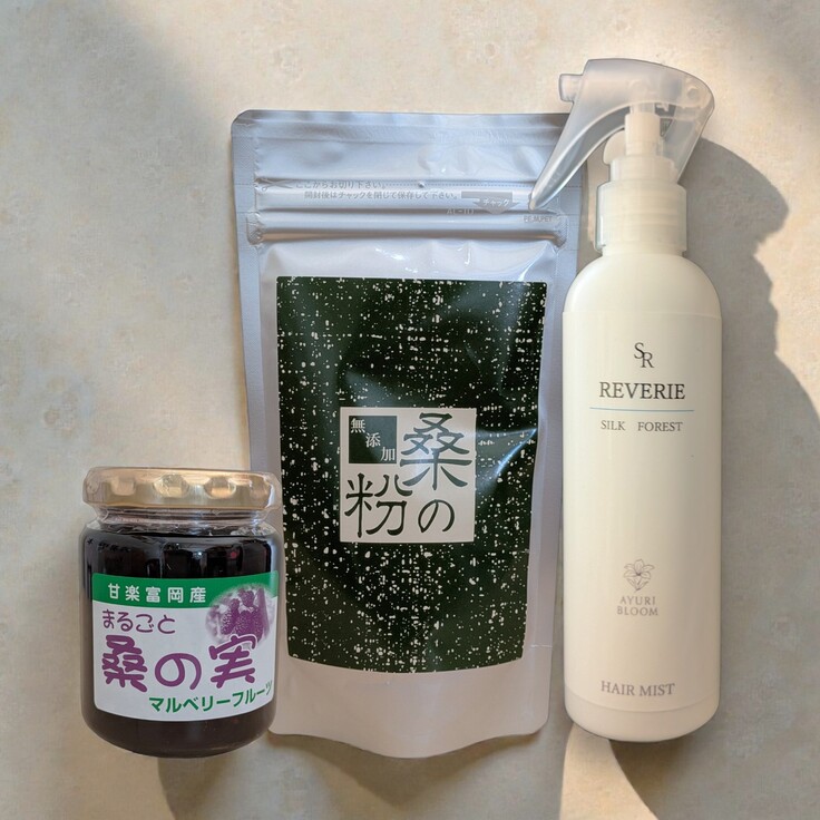 ▽寄贈に至った背景・経緯:富岡シルク資源の循環活動を広めるため、関係各所に今回のクラウドファンディングについてヒアリングを行う中で、連携事業として国内の養蚕農家や生産量及び桑畑が激減していることを知り、弊社として応援できることはないかと考え、弊社の主力商品である化粧品(シャンプー)に原料として配合可能な富岡産シルクパウダーと国産ナノ化シルクフィブロインを化粧品の保湿成分として配合することを企画しました。