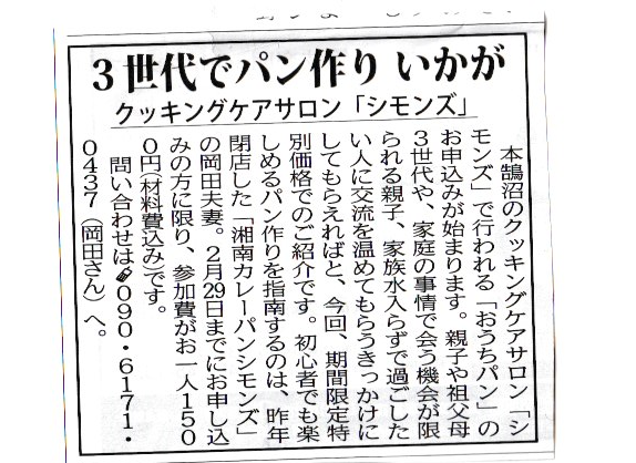 ※クッキングケアサロン・シモンズにお越しいただいた方に、シモンズのパンをお渡しいたします。