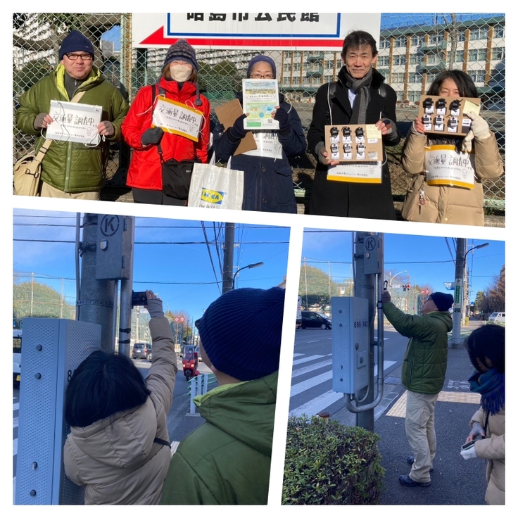 瑞雲中交差点での交通量調査の様子です。 自動車交通量計測のための撮影機材を取り付けています。カウンターと撮影した動画で計測しています。