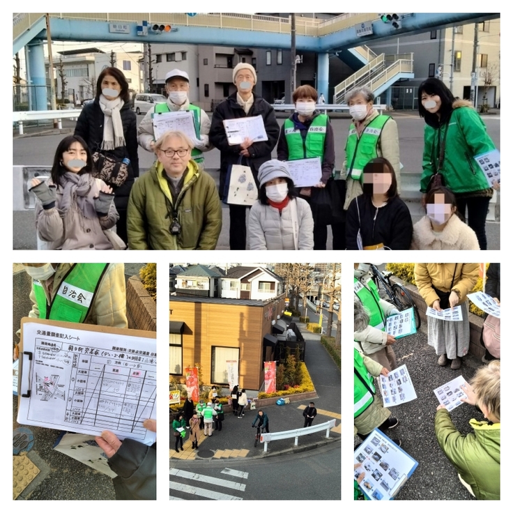 朝日町交差点での交通量調査の様子です。 自治会の方々のご協力を頂きました。 ありがとうございました。