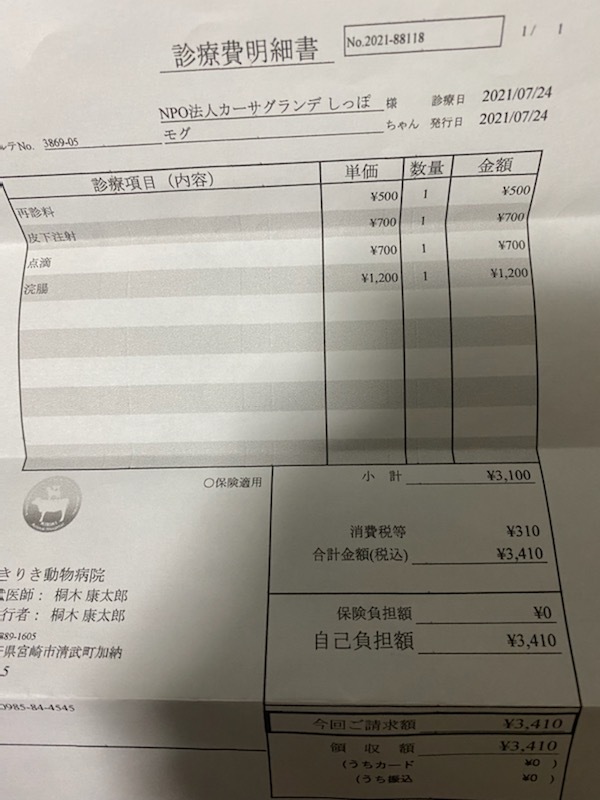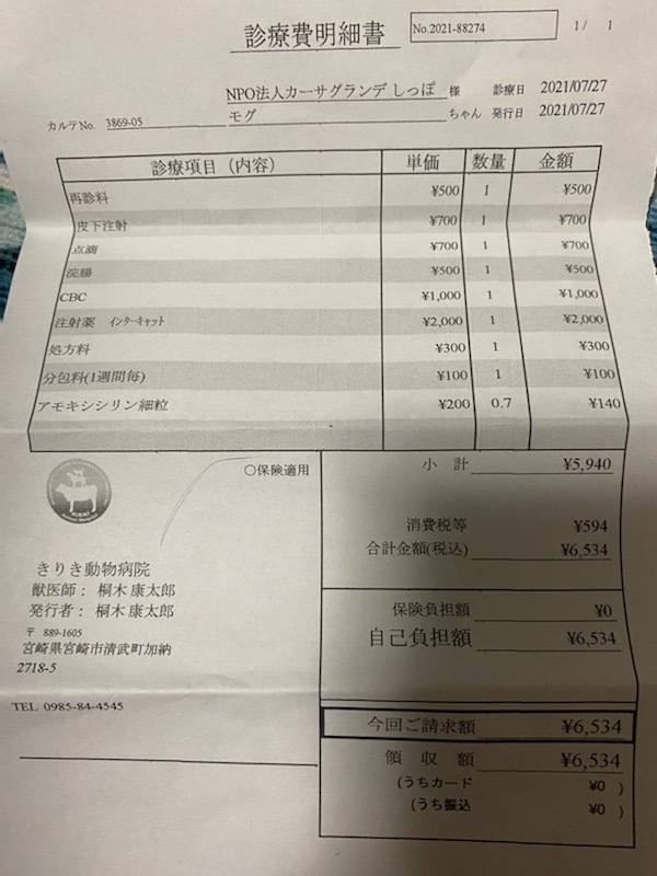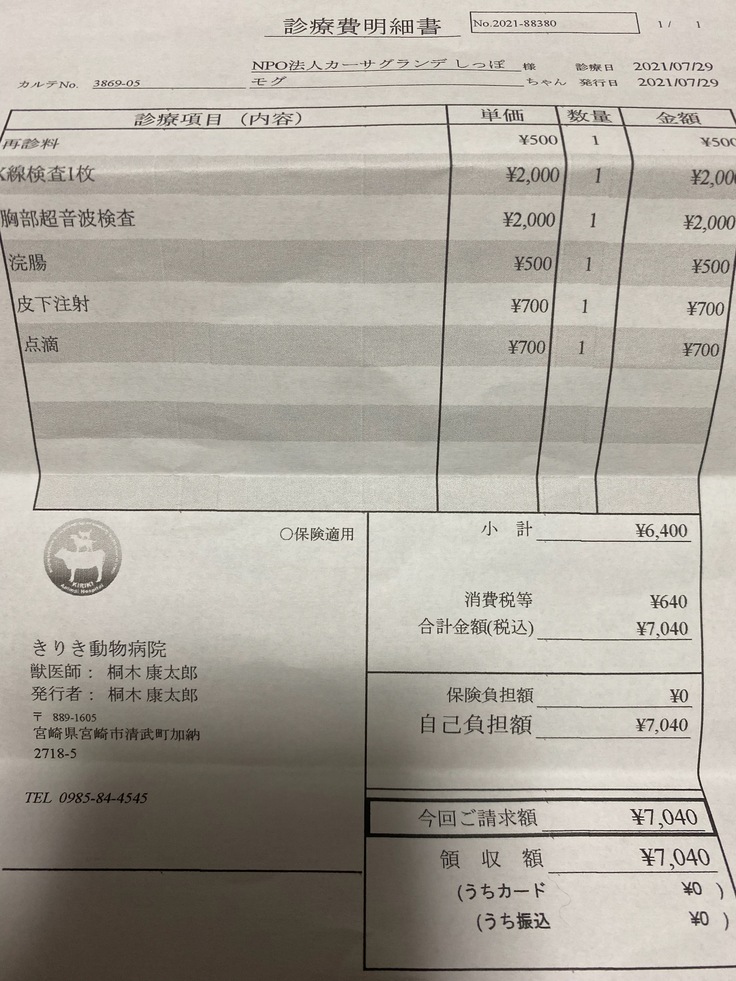 資金は病気で保護している、半身不随のキング君、モグちゃんと同じように遺伝子奇形で生まれたサザエちゃんの治療費に使わせていただきます。
