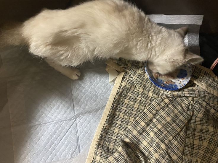 夜には少しだけ自らご飯を食べる姿をみることができました!!