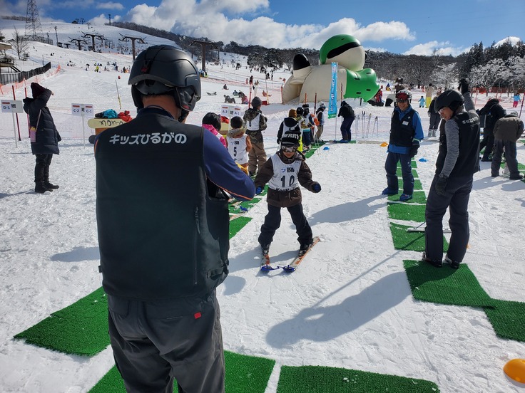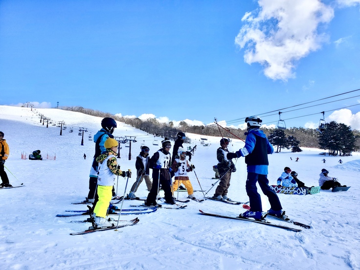 皆様のおかげで、本日2月12日、40名の県内外の小学生にお越しいただき、無事講習を終了することができました。快晴で暑いくらいのひるがの高原スキー場は、3連休最終日もたくさんのお客様で賑わってい中、専用ゲレンデでの午前の講習の後、午後からは全部のグループでリフトに乗って滑走することができまた。先生の言うことをしっかり聞いてくれたみんなと、キッズひるがのスキースクールの皆さまはじめ、講師の皆さんのおかげです。