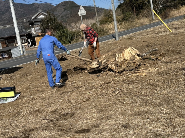 前回女性陣ではびくともしなかった切り株の撤去ですが、、、