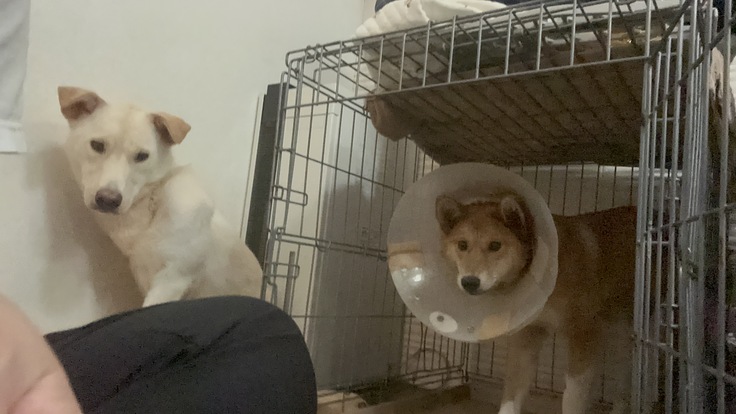 しばらくエリザベスカラーを外すことを許してもらえず窮屈な生活…