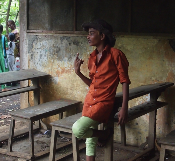 手遊びばかりしていたアクシェー、カージャルはノートいっぱいにアルファベットを書き写します。