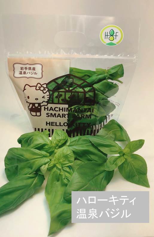 収穫体験で収穫して頂いた【八幡平スマートファーム産】温泉バジルは、サンリオ社様とコラボした鮮度保持フィルムを使ったハローキティパッケージに入れてお持ち帰りいただいております。(※別のパッケージの時もあり)