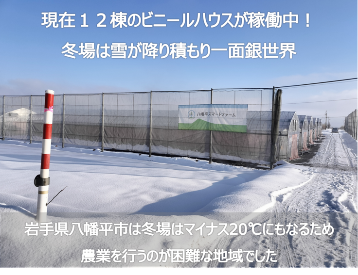 それを解決すべく2019年1月、八幡平市や地元の金融機関などからも協力を得ながら、会社組織として農業を再び復活し、地域の雇用創出を実現。現在12棟のハウスを稼働しております。