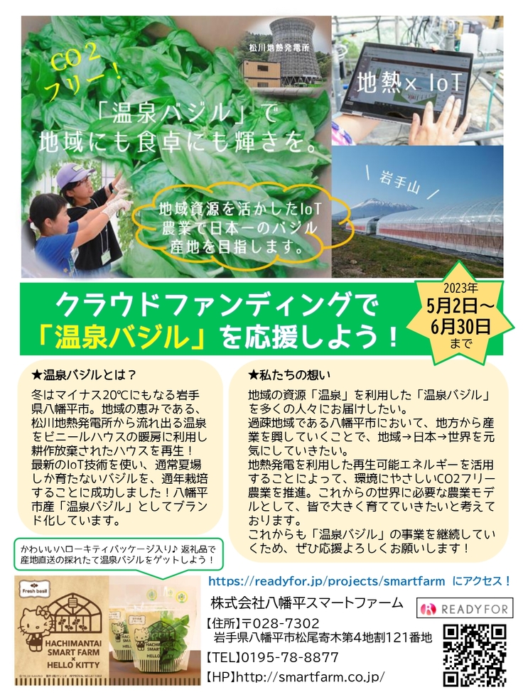 【八幡平スマートファーム】フレッシュ温泉バジル~沢山の笑顔の為に~