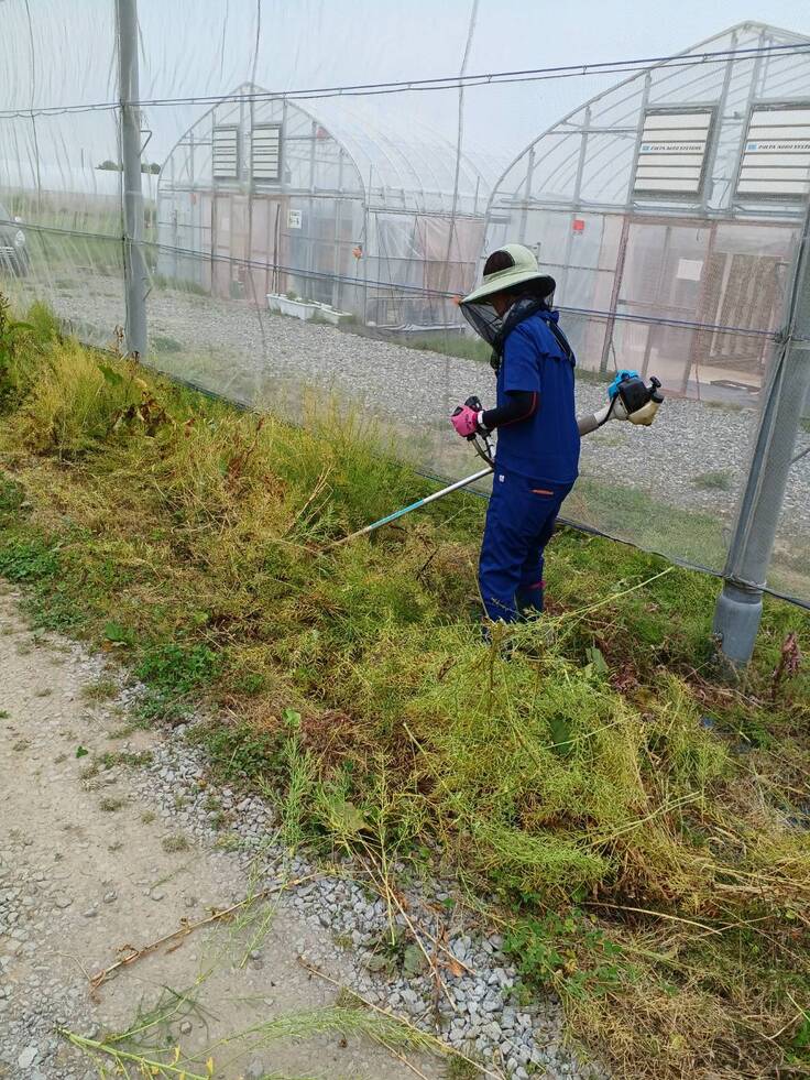 ↑こちらはハウスのそばに茂った草を刈っている様子です。