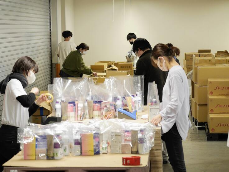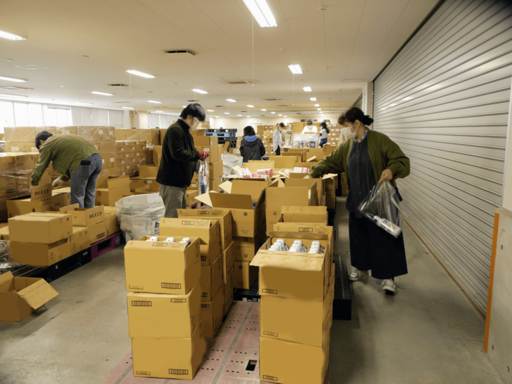 33,000世帯へお届けできるように準備をするので、商品の詰合せ作業もものすごいスピードで、スタッフたちが一致団結して作業をしていました。