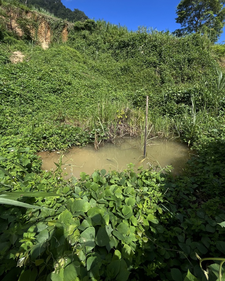(写真3)は、学校で生活用水として使っているため池です。裏山から湧き出る水を溜めているのですが、雨の多い雨季には山からの土砂ですぐにため池が埋まってしまい、その度に村人や先生が協力して水源を確保しています。また、柵がないため子どもたちが入って遊び、水が濁ることがあります。この水はトイレや日常生活に欠かせないものなので、水質や水量が安定しないことは学校生活そのものを不安定にしてしまいます。安心して使えるきれいな水を確保することは、子どもたちが健やかに学校生活を送るうえで欠かせない課題です。このようにポームアンノイ小学校では、当たり前のようにきれいな水が使える状況ではありません。そのため支援を通して、未来を担う子どもたちが少しでも安心して成長していけるよう、水環境の改善が求められています。