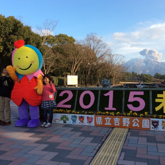 すまいるんるんちゃん は2015年を迎え、鹿児島のシンボル桜島が一望できる吉野公園で新たな決意をしました。「スマイルリボン」は鹿児島市にあるNPOですが、全国でも最も患者やキャリア(感染者)の多い地域とされてきました。