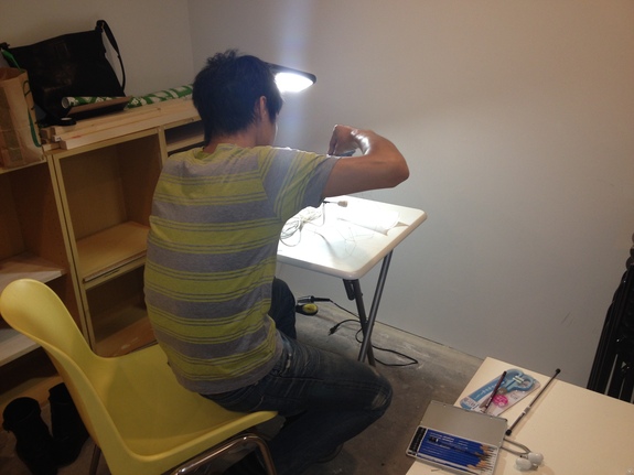 写真は、東京行灯祭前日に制作中のアーティストです。