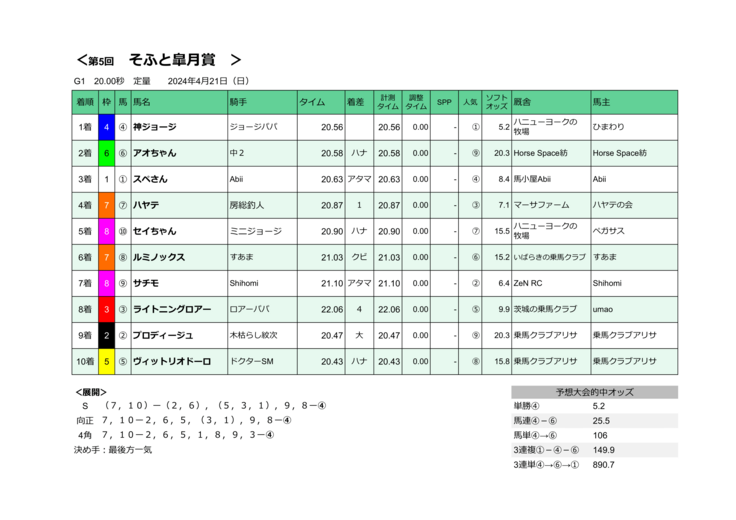 先週4/21(日)に開催した<第5回そふと皐月賞>の結果です!