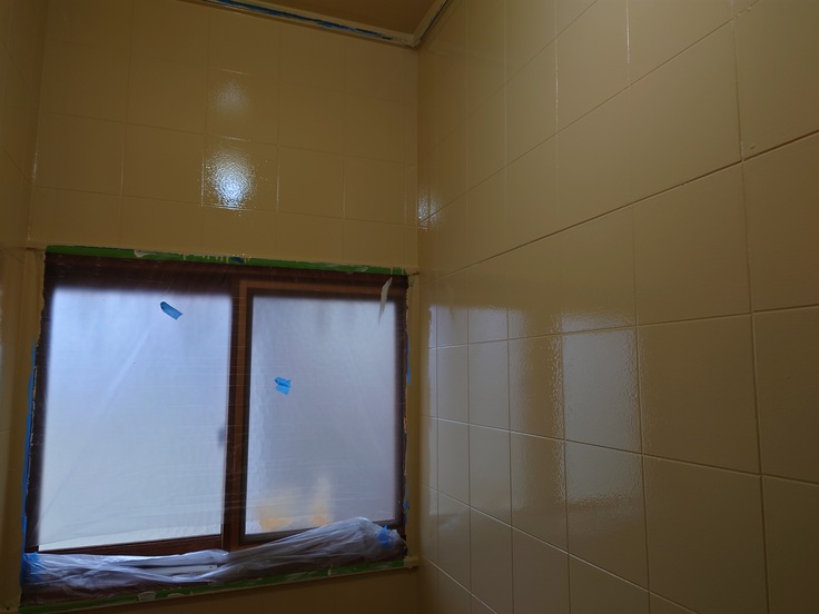 ⬆壁は塗装、まずは下塗りです