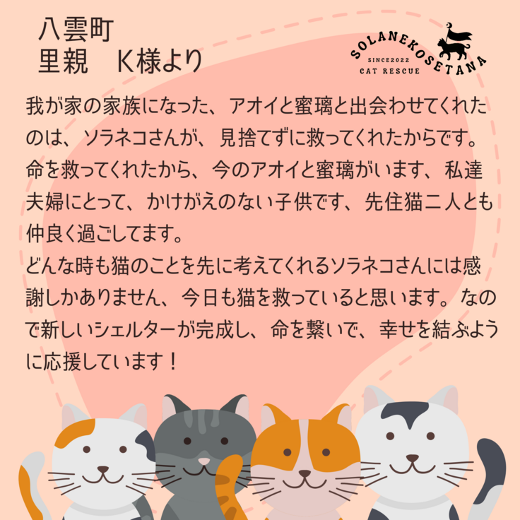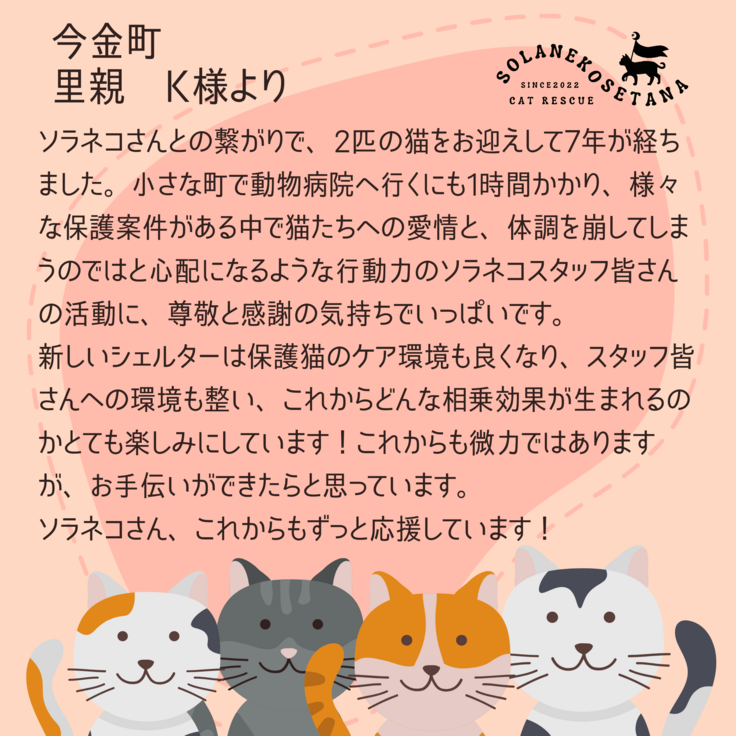 1匹でも多くの猫を救い新しい飼い主に繋げる為に|ツキネコサポーター