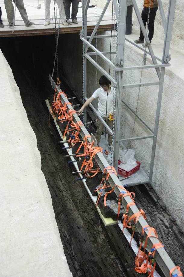 この皆様からのご支援は3Dスキャナーと周辺機材、購入費・通関料等として2,000万円、残りはすべて次の段階で行う実物大模型の作成のために使用させていただきます。まだ3Dスキャナーの実物は現場に入っていないのですが、現場に導入されたところでまた皆様にご報告いたします(9月末頃を予定)。先にご報告しておりました通り、現在は大きな部材の取り上げ中で、小さな部材の取り上げとはまた違った苦労があります。この部材の取り上げはもちろん大変難しい作業ではありますが、やはり3Dスキャンニングの作業が一番遅れておりました。しかし、皆様からのご支援で導入できることになった3Dスキャナーが入ることで、秋以降は作業のスピードアップが期待されます。