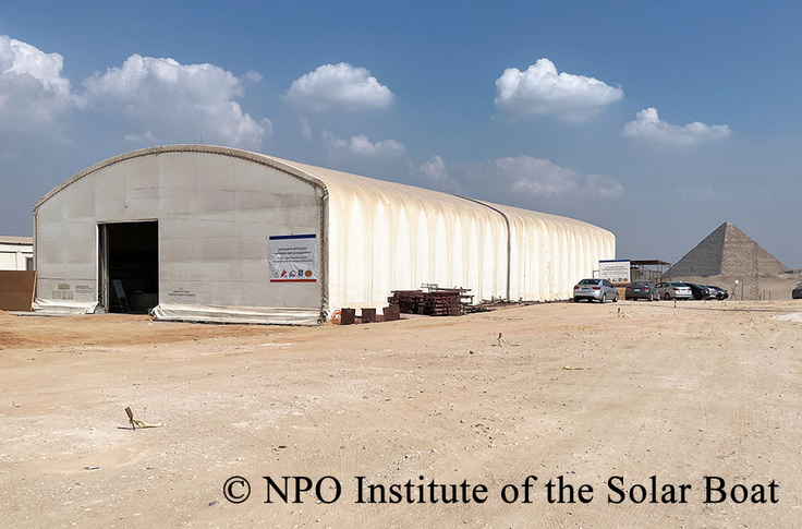 私たちは今、「第二の太陽の船」を組み立て復原し、大エジプト博物館で公開する事業にとりかかろうとしています。そのために、大エジプト博物館の敷地の中にギザ遺跡で使っていたテント倉庫を移築して、準備作業場を作りました。