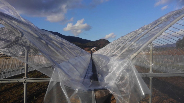 ハウスは谷間部の裾と防虫ネット張り完了😄