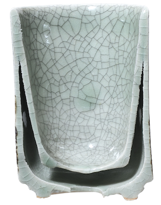 この二重構造は日本唯一技法であります。元々は藩へ献上する「相馬駒焼」に対し、「大堀相馬焼」、一般庶民向けの焼き物でした。どうしたら、皆が使いやすくなるだろうと考えた結果、このような形態に進化していったといえます。