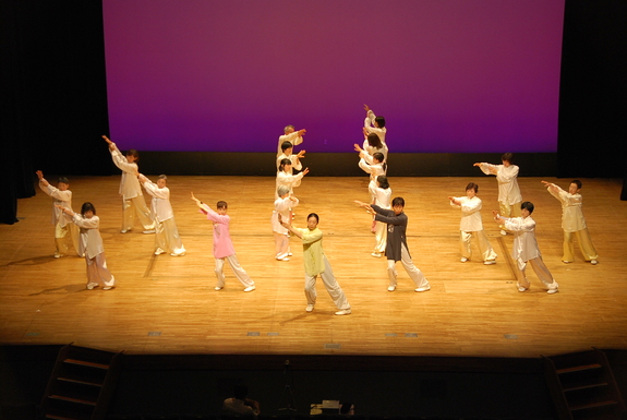 スリランカの女性たちが製作したカンフーパンツを履いて、「メディカル気功太極拳」などを表演しました。