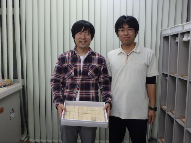 このクラウドファンディング・プロジェクトを公開するにあたって、知的障がいのある人が携わった製作品をお礼(リターン)品にしたいと、知り合いの事業所の担当者の方に相談したところ、「実際、これくらいの事しか出来ないけれど・・」と言って、何と8割の製作工程(カット・面取り)が済んだ素材200個を「無償提供!」して下さいました。この素材を使うことで、それまで1人で1時間に2〜3個しか製作できなかったロゴ入りマグネットが、倍速で作れるようになっただけでなく、製作コストが下がったので、その分だけ無料で参加できる人を増やすことが出来そうです。ありがたい協力をいただき、目頭が熱くなりました。