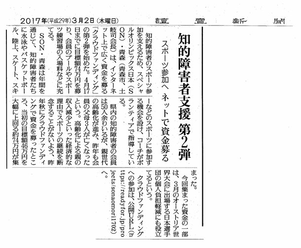 「第二弾!青森県で知的障がいのある人に無料でスポーツできる場を」