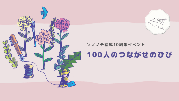 『100人のつながせのひび』プロジェクトは、ソノノチの結成10周年を祝うイベントを開催するため、支援を募るプロジェクトです。ご支援いただくことで、イベントに参加できるだけでなく、あなたからいただいた手紙が、展示や作品の一部になります。