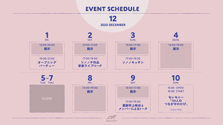 10日間のイベントの締めくくりとなるセレモニーを開催します。ソノノチ結成10周年企画、最後の取り組みを、ぜひ共に見届けてください。