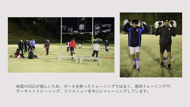 3日間、早朝や夜遅い時間帯に、外部の人工芝のグラウンドを借りて行っています。
