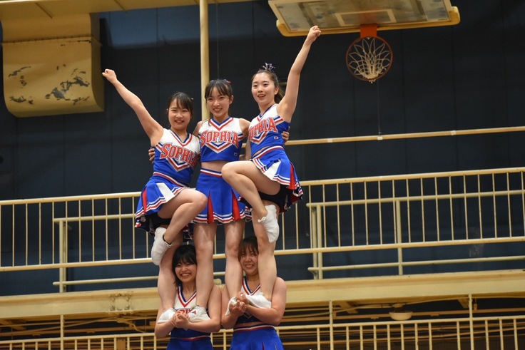 ページをご覧いただきありがとうございます。上智大学応援団チアリーディング部EAGLESです!私たちは応援団に属するチアリーディング部として、学園祭や祝典行事などの学内活動、体育会部活動の応援、そして冬に行われるチアリーディングの全日本学生選手権大会に出場しています。応援活動とチアリーディングの両立は非常にハードではありますが、どちらも私たちにとっては大切な活動であり誇りを持って取り組んでいます!