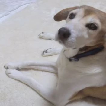 昨年の夏にセンターから引き出し、色々な治療を受けているシニアのビーグルmixまるお君。