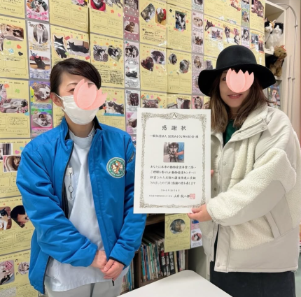 名古屋市動物愛護センターの皆様、感謝状をありがとうございました。