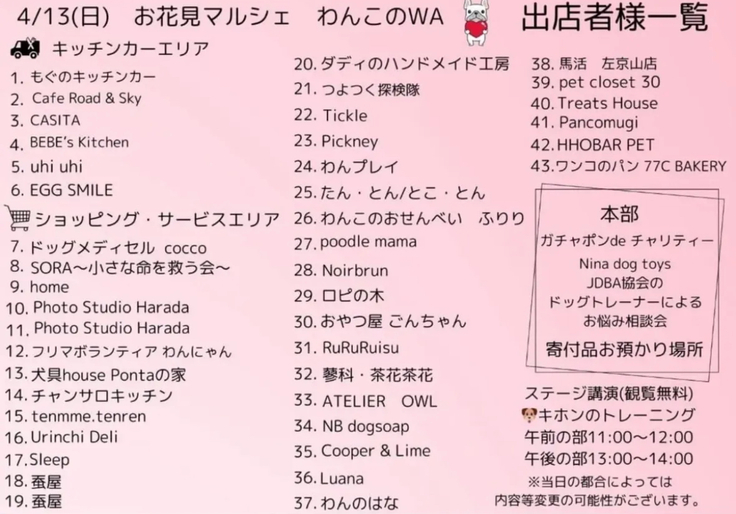 お花見ドッグマルシェ「わんこのWA」に参加させていただきます。