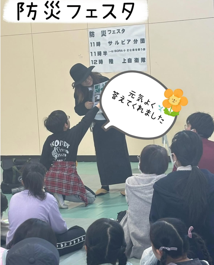 公演は、消防の方達から始まり、私達の災害時のお話、最後は自衛隊の皆さんのお話の救急救命と、どれも防災に関わるお話ばかり。