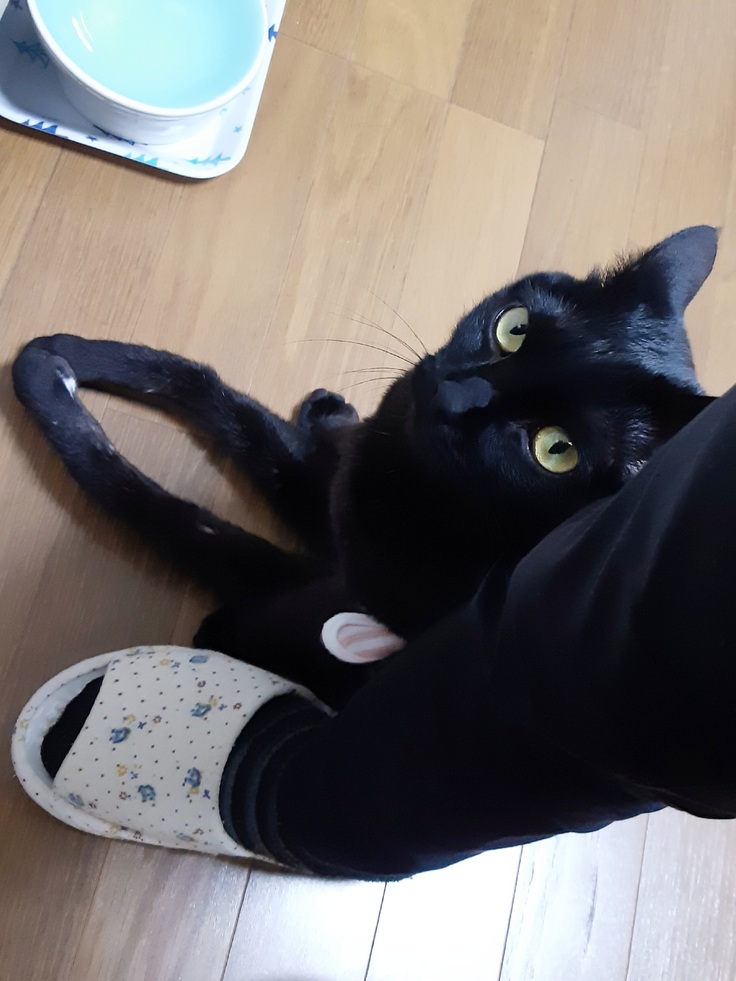 仕事から帰るとご飯のおねだりが半端ない下半身麻痺の保護猫モナちゃん。( ´艸`)