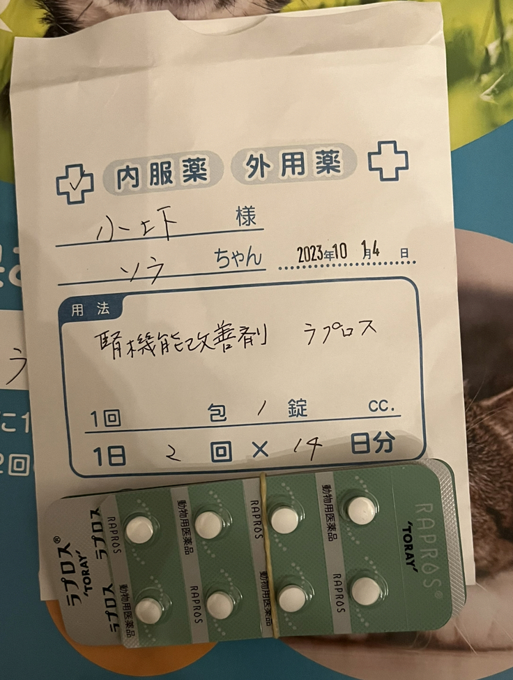 点滴セットを25日分処方して頂き、来月血液検査等をしラプロス(腎臓病の薬)の投薬を始めるかどうか決めることとなりました。