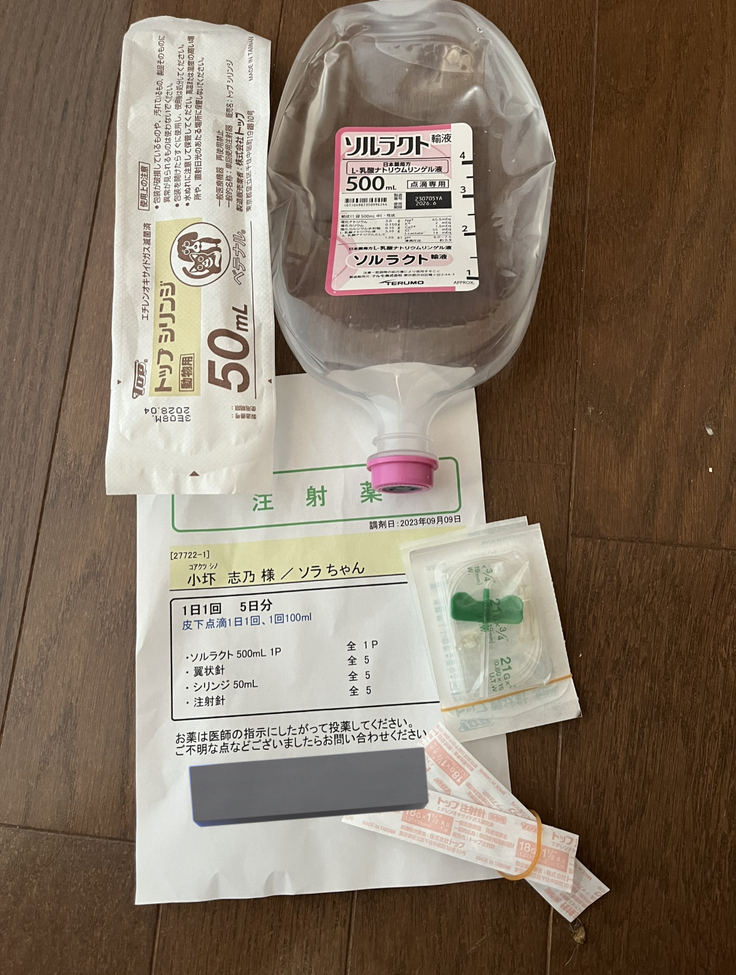 これから毎日100mlの皮下点滴及びソラ専用のトイレ設置、いろんなタイプのフード購入、万が一悪化し時の入院等。。