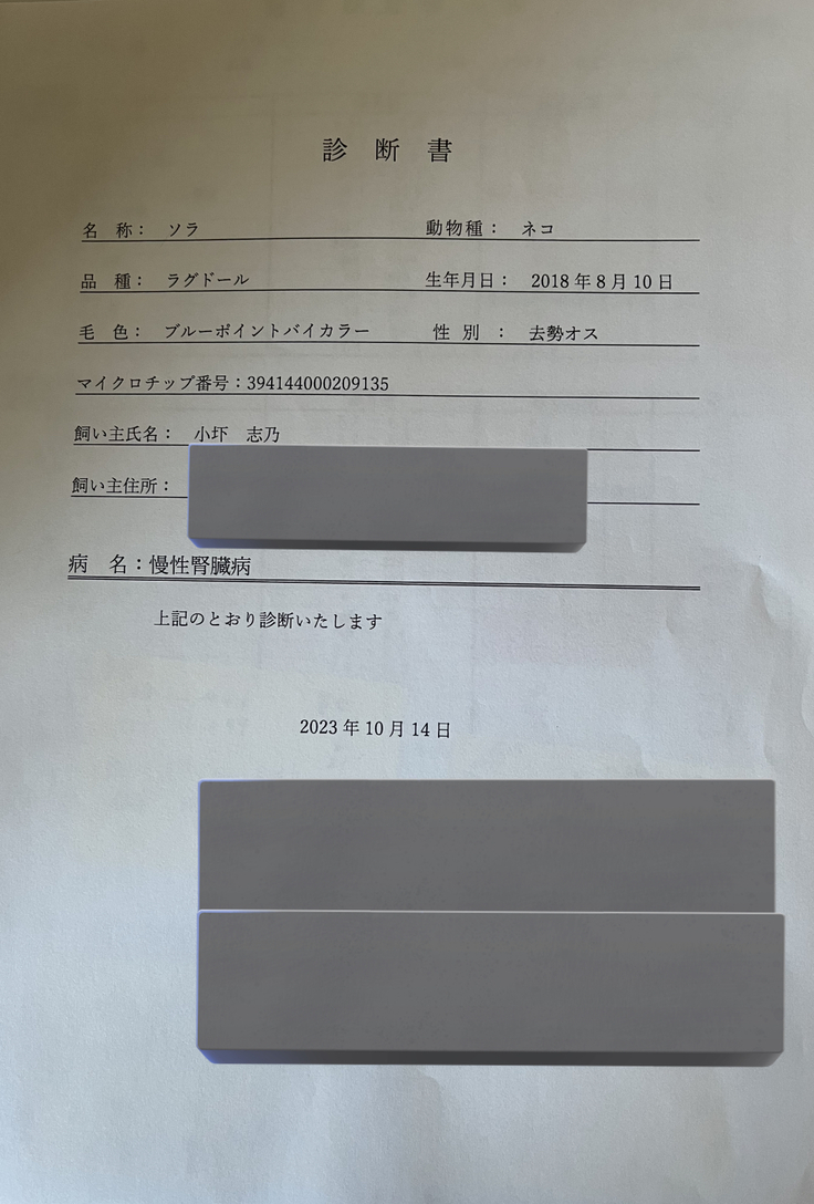 ページ上に掲載している診断書や診療明細書などの資料は全て動物病院から掲載の許諾を得ております。