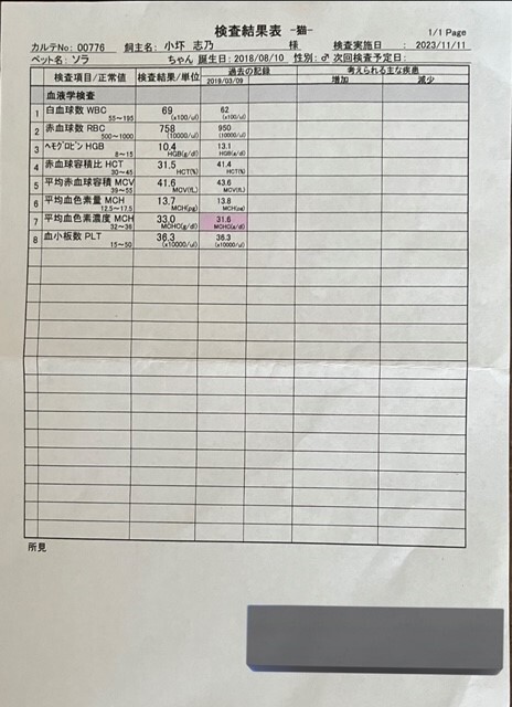 【11/11血液検査結果聞くため病院へ】