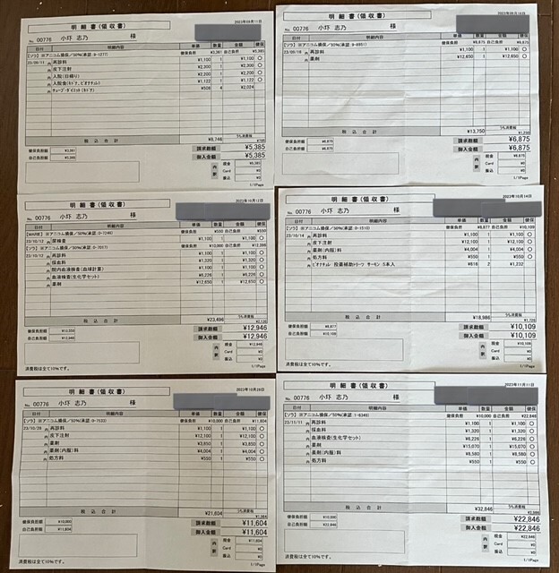 2023 10/14 かかりつけ医による注射、薬代、投薬補助トイーツ代:\10,109