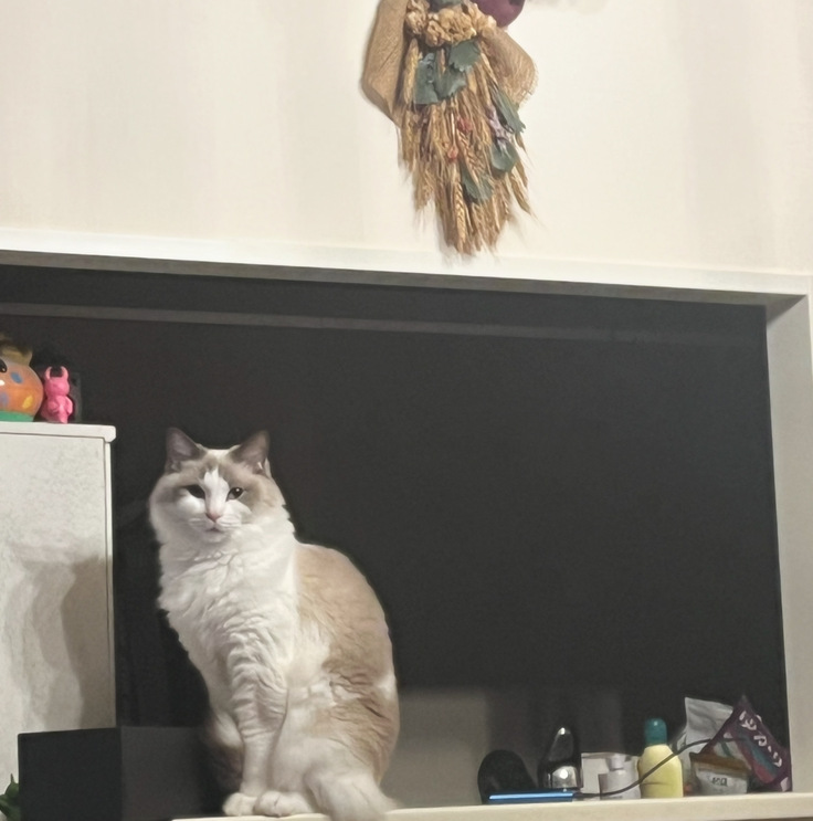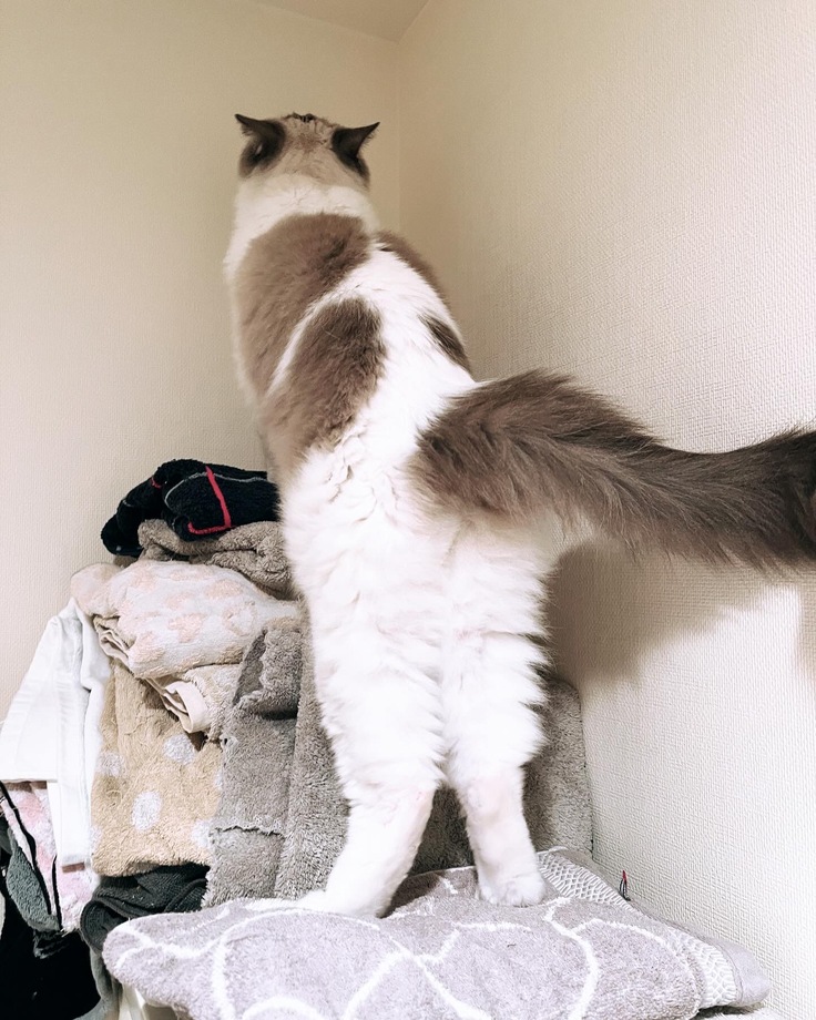 洗面所でお水飲んだ後、タオルの置いてある棚にジャンプして移動して、そこでくつろぐのが