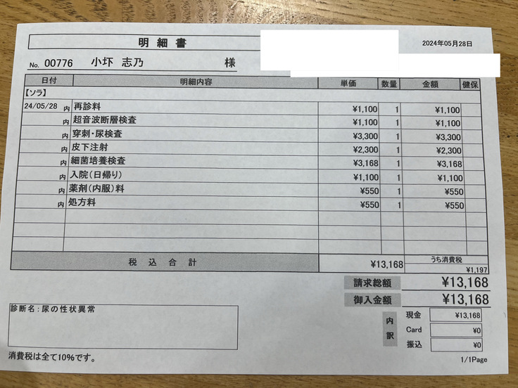 保険適用回数がmaxまであと数回の為、今日は保険使わずに支払いました。