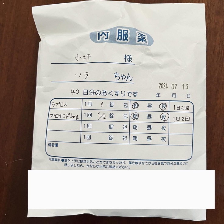 来月はお盆休みがあったりするので、今回は多めに40日分の輸液セットとお薬を貰って来ました。